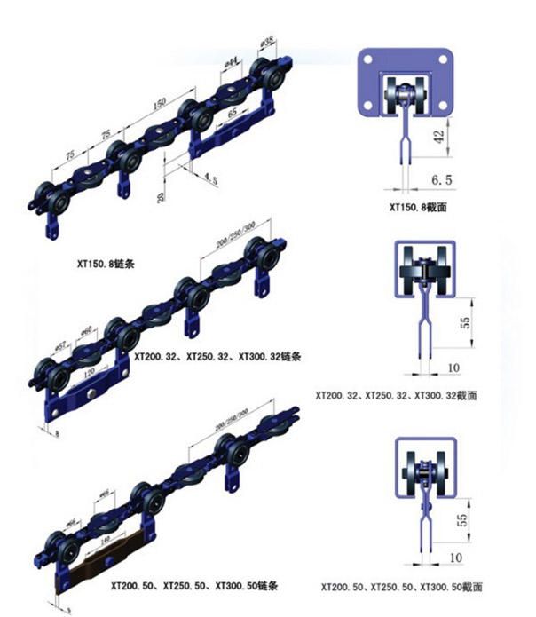 軌道采用開(kāi)口方鋼管制造,具有外型美觀,運(yùn)動(dòng)部件不外露等特點(diǎn),除了提高鏈條本身的防塵、防污性能外,同時(shí)也減小了因偶然事件造成的觸及、刮破鏈條等故障,加強(qiáng)了安全性。