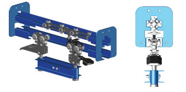 每個載貨小車的停止可以通過前小車安裝的前鏟,和后車安裝的一個尾板,前鏟沿著前面停止小車的尾板斜面上升時升降爪下落使得載貨小車牽引鏈條脫開來實(shí)現(xiàn)。還可以通過軌道上設(shè)置的停止器叉板來把前小車升降爪壓下使得載貨小車與牽引鏈條脫開來實(shí)現(xiàn)。